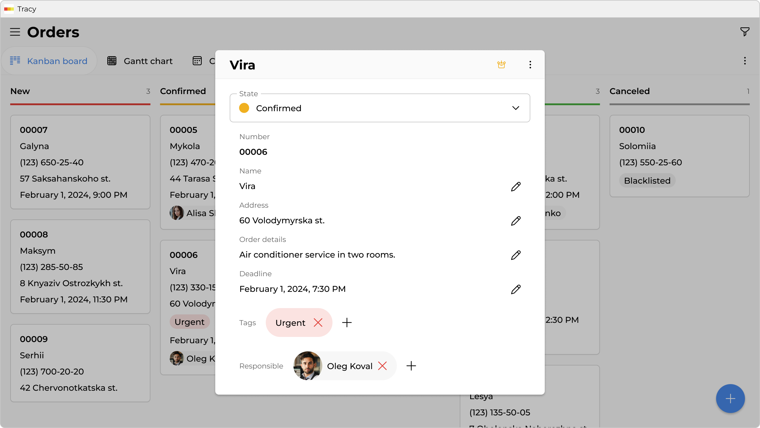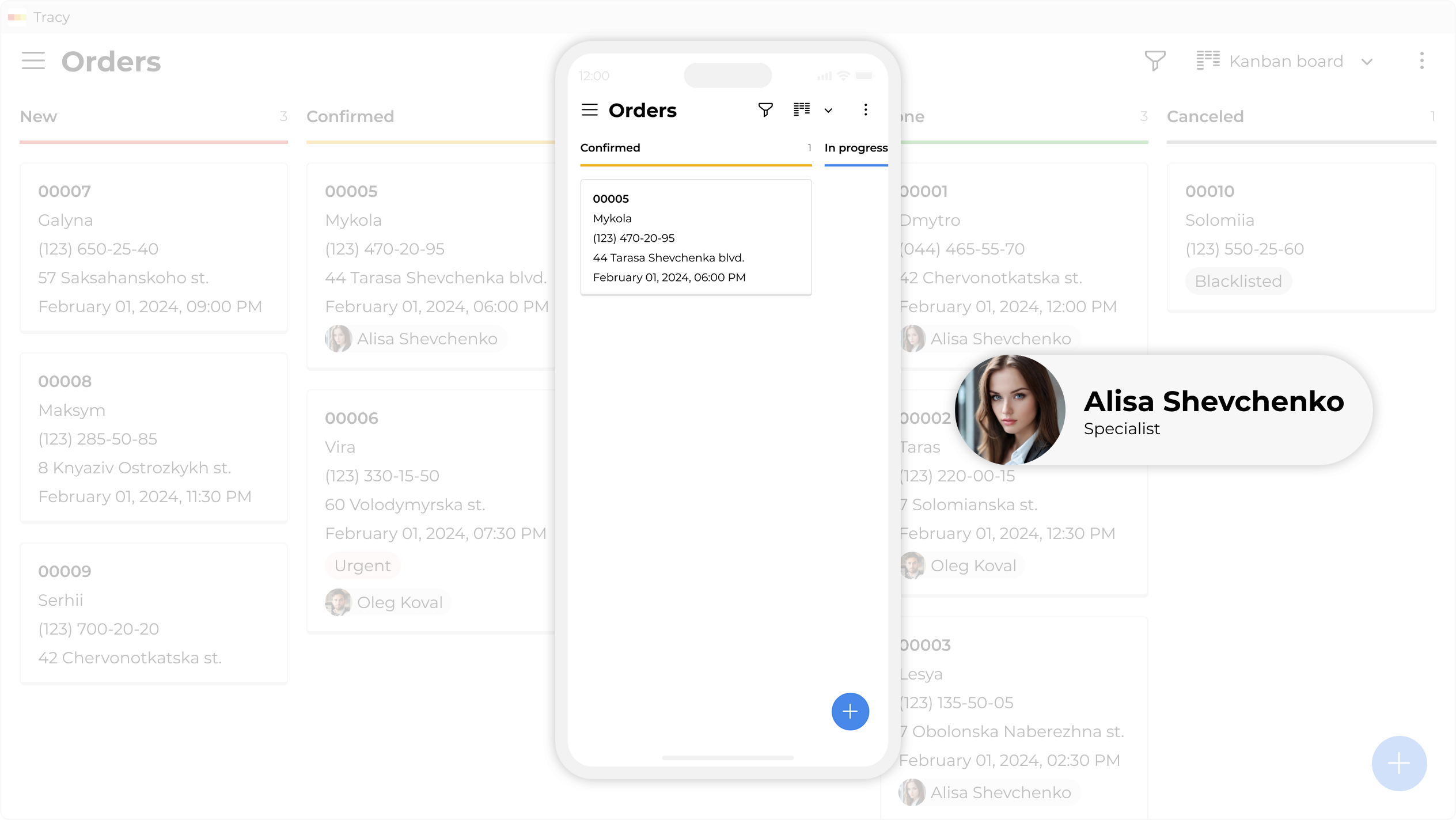 The manager needs to see all orders from all clients and find it more convenient to work with them on the computer. Whereas the specialist only needs to have their own schedule on their phone (where to go and what needs to be done), without needing to know the details of other orders.