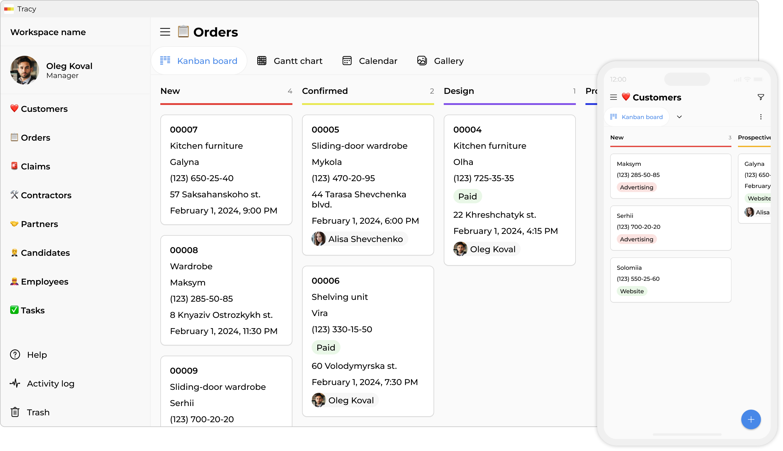 Tracy adapts as you grow: databases, workflows, fields, and permissions—all tailored to your business.