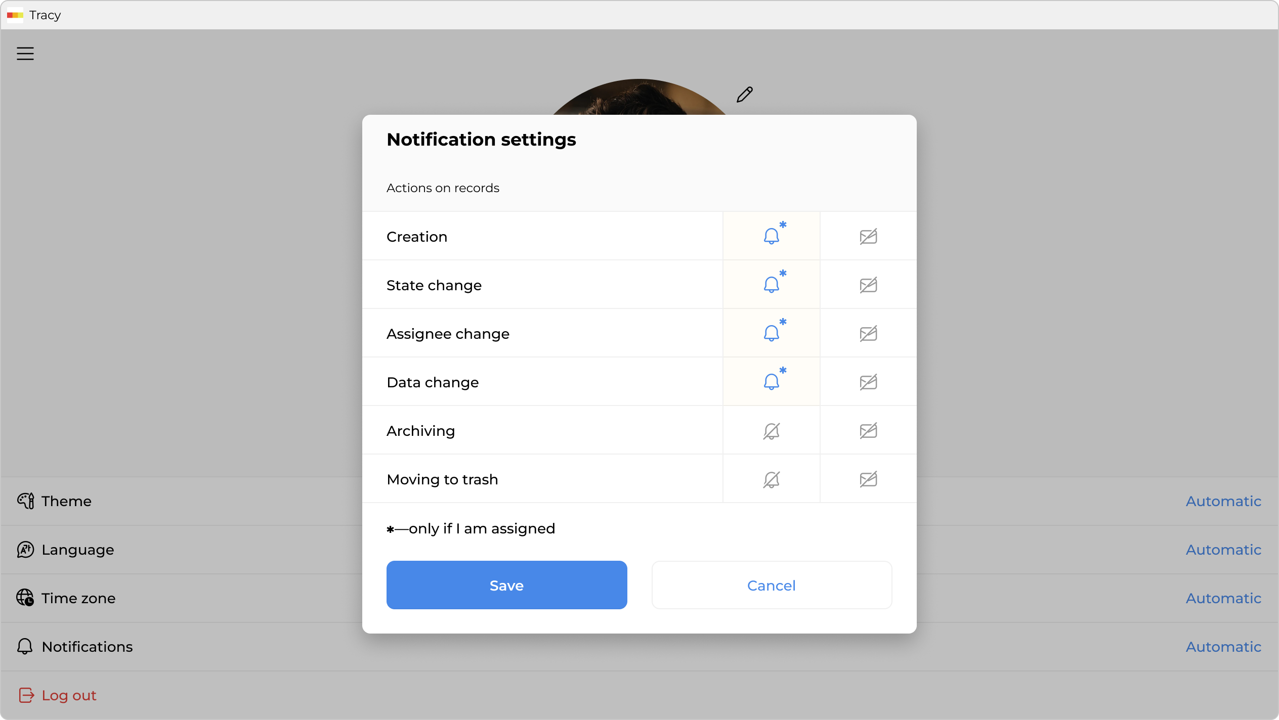 You can also specify which records to receive notifications for—all records you have access to, or only those where you are assigned.