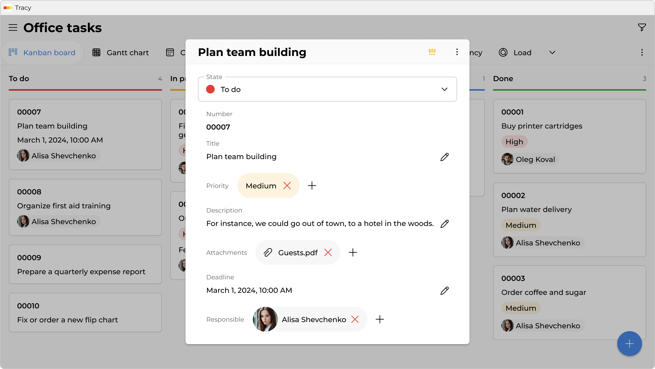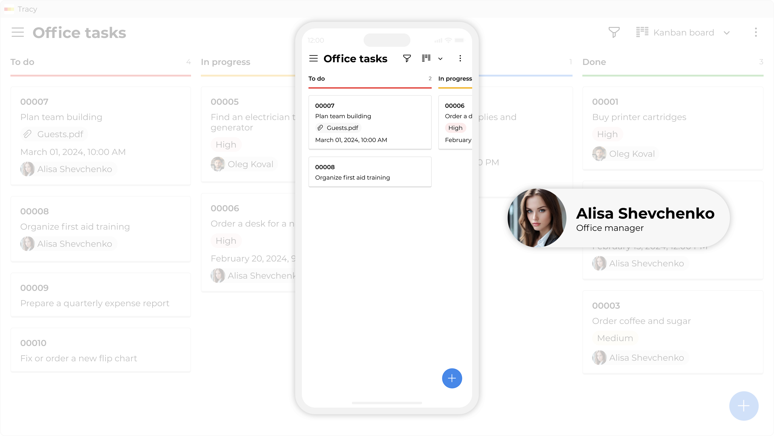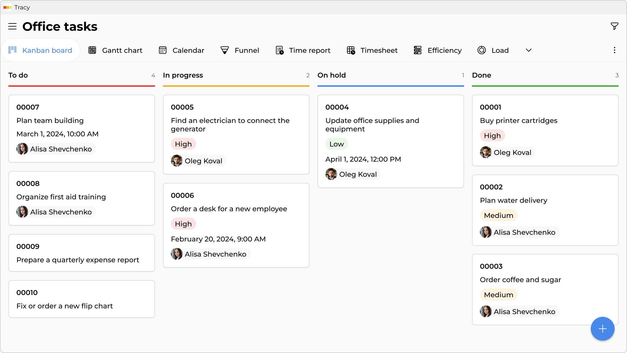 In a team, there can be many processes, projects, and tasks. Everyone working in the office needs the ability to ask the office manager to order coffee, fix the flip chart, etc. (and receive notifications when it’s done). Meanwhile, the office manager just needs a list of their own tasks with clear priorities and deadlines.