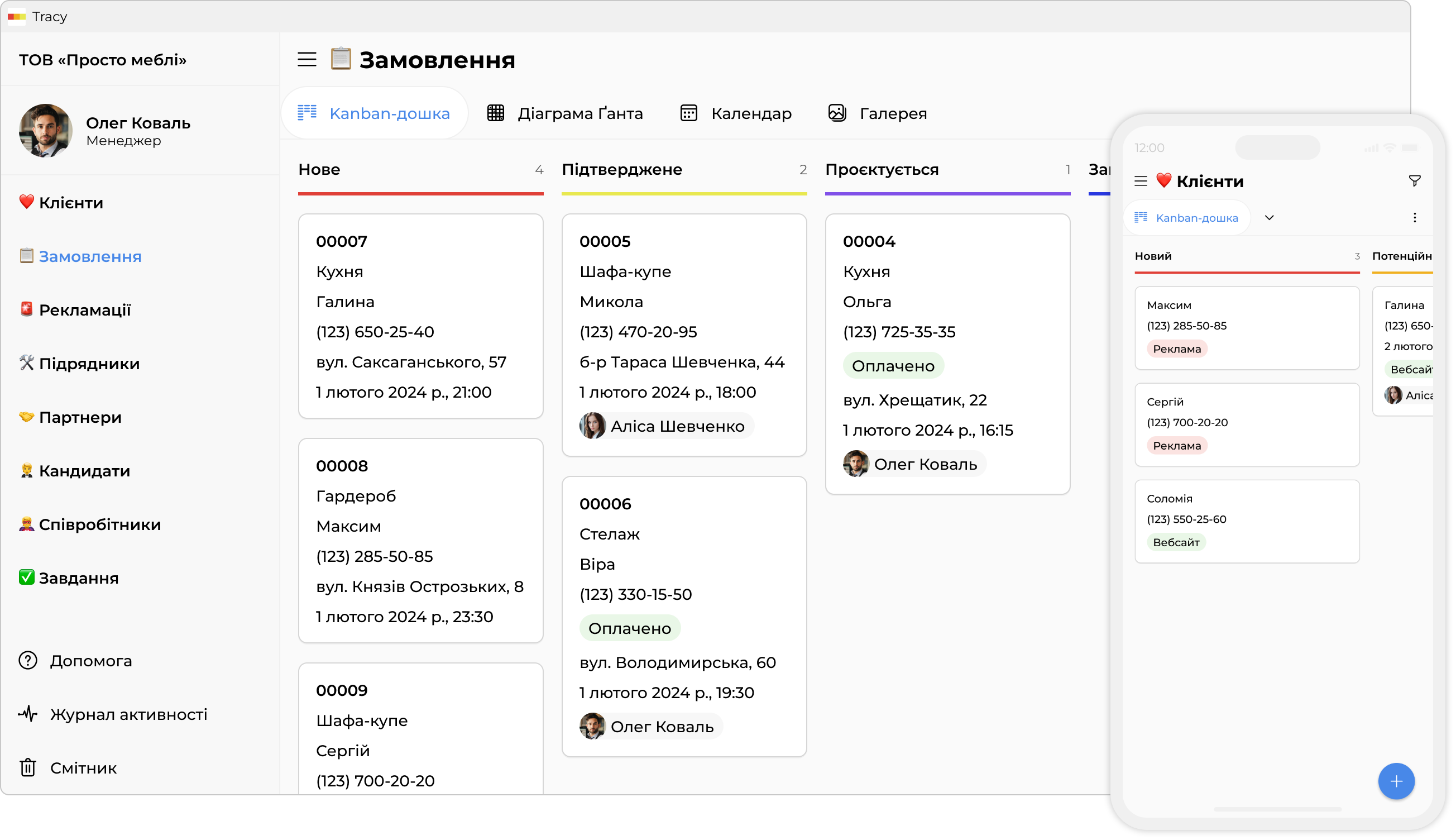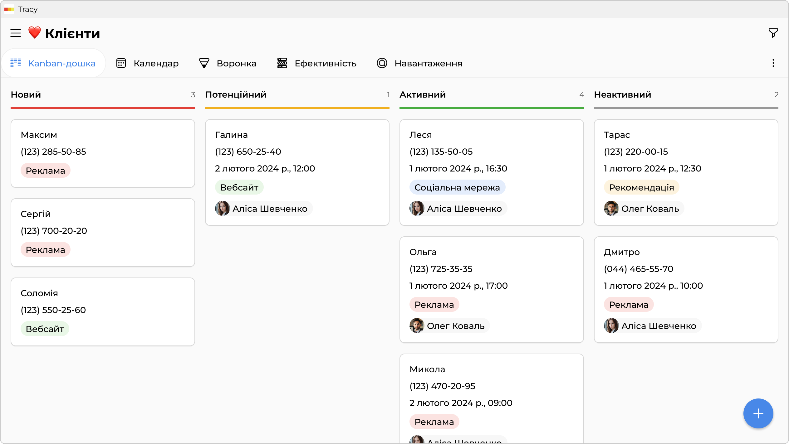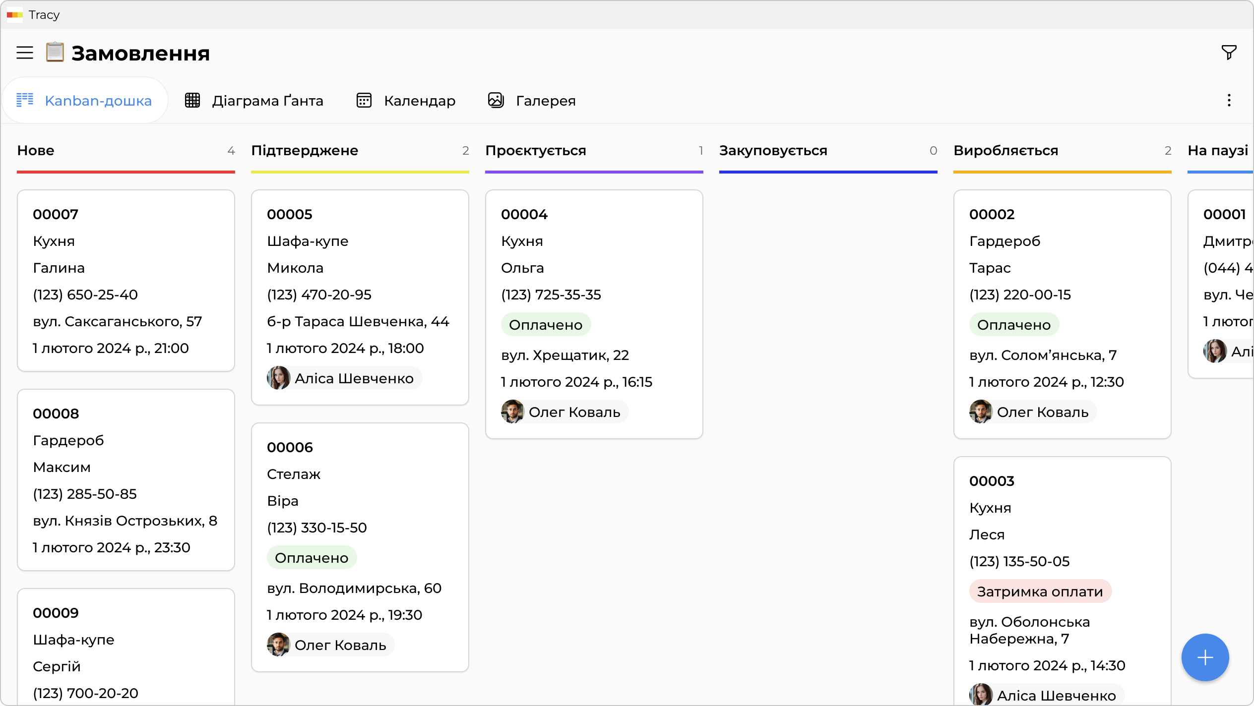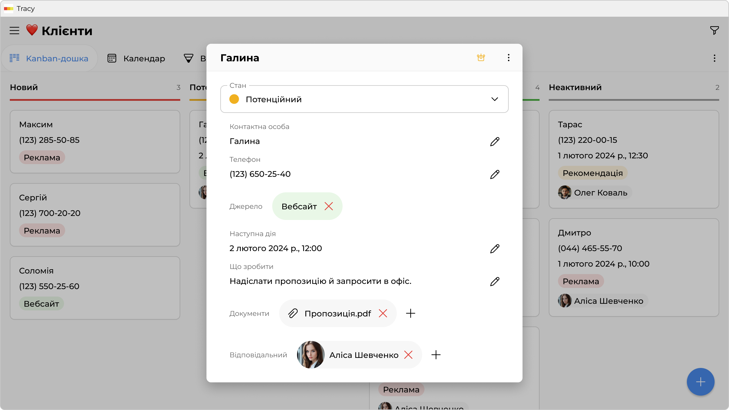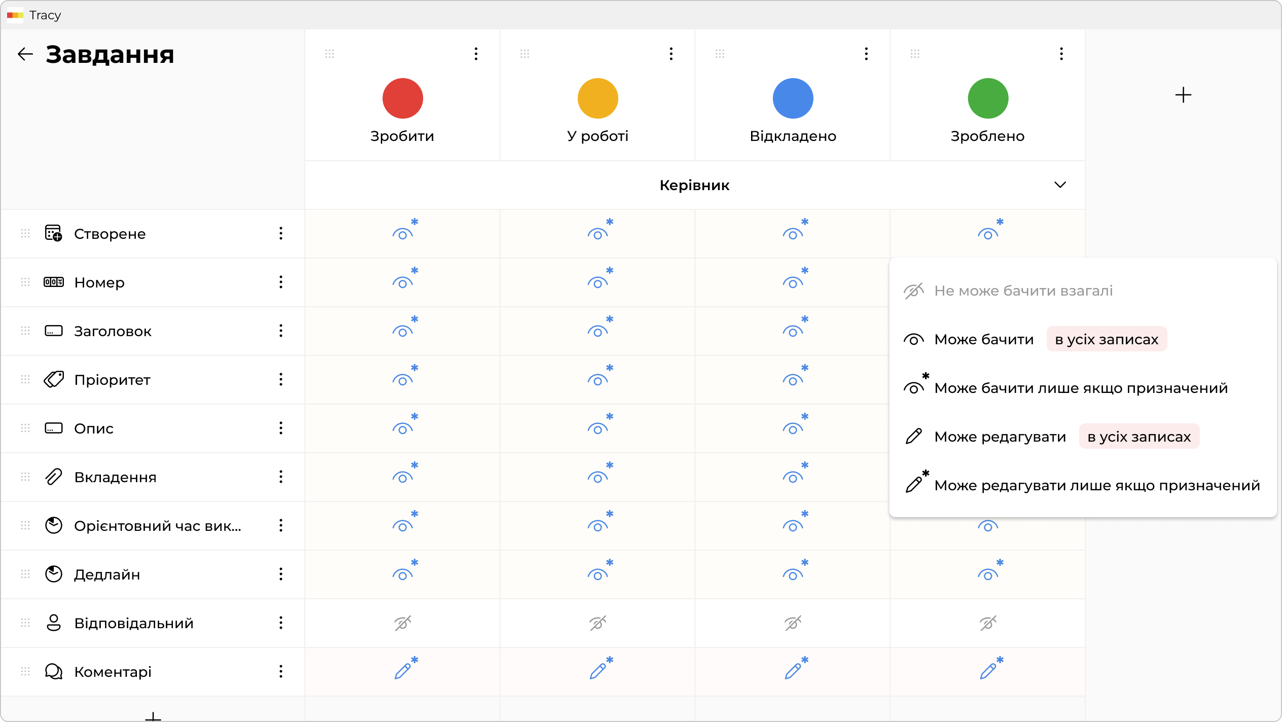 Трейсі змінюється разом з вами: бази даних, етапи, поля, права доступу — усе налаштовується під бізнес-потреби.