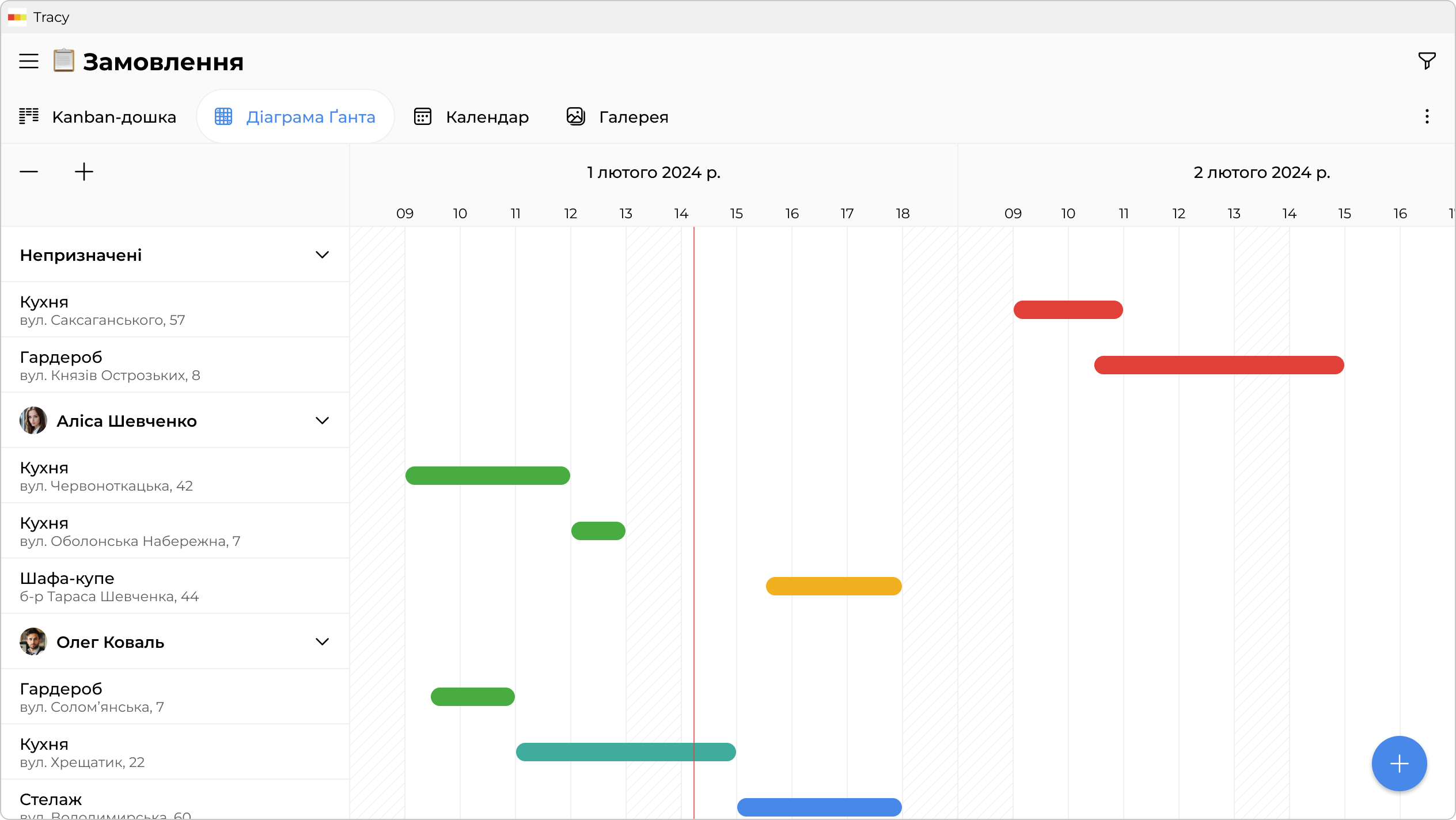 Візуалізація завантаженості на діаграмі Ґанта — висока точність прогнозування готовності замовлень і низький ризик помилок.