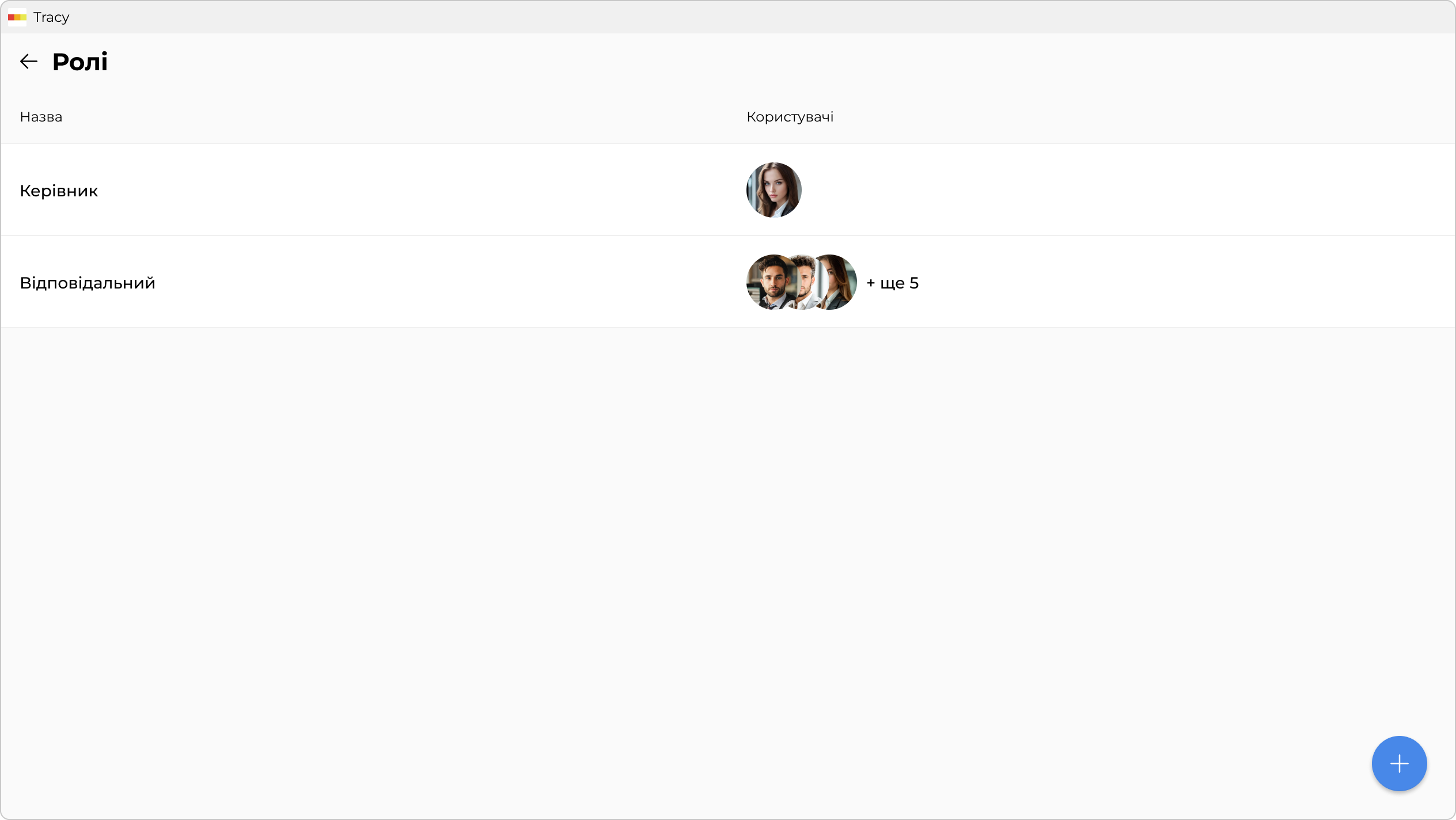 Щоб додати роль, потрібно натиснути на блакитну кнопку з іконкою «+» праворуч знизу екрану.